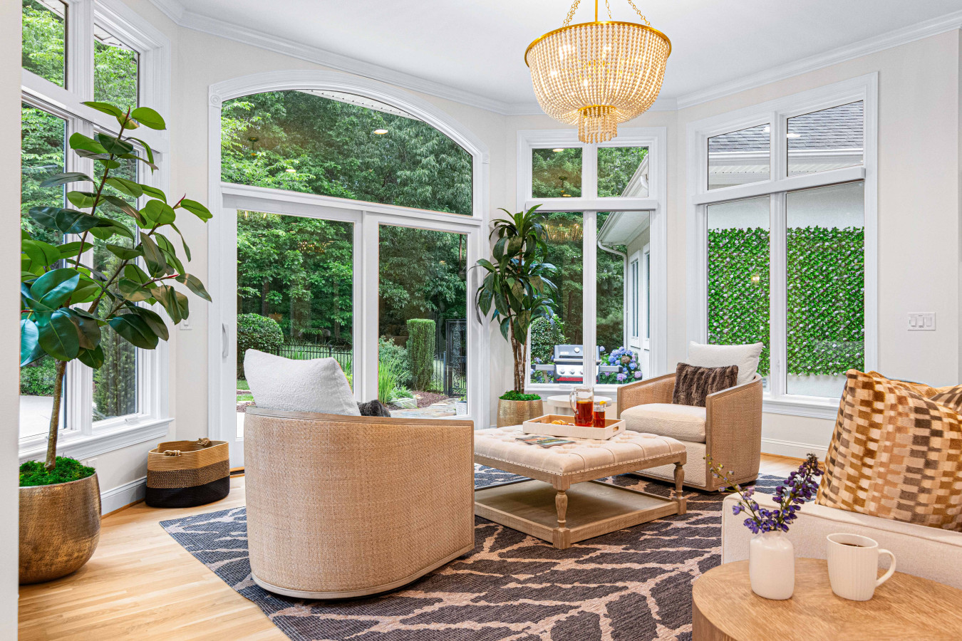 ✹ Stunning sunroom porch with full-length windows bringing in lots of light