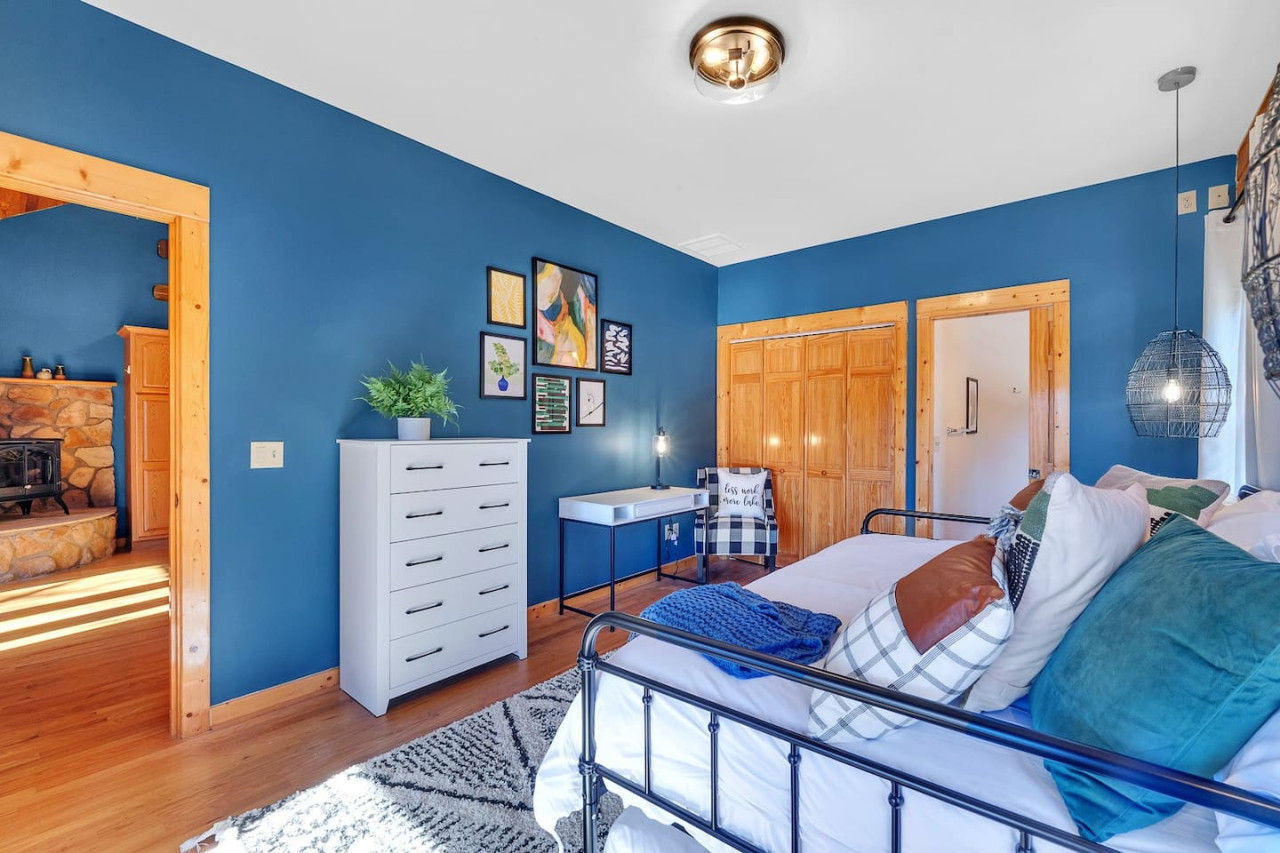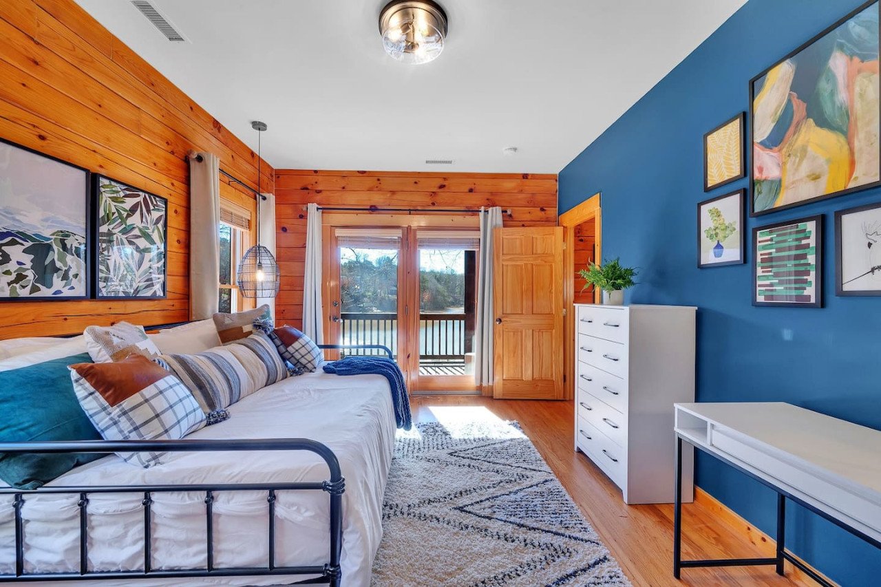 ✹ Upper-Level Bedroom 2: Full-size Daybed With Twin Trundle, Ensuite Bathroom, Dedicated Workspace, Direct Access to Upper Deck