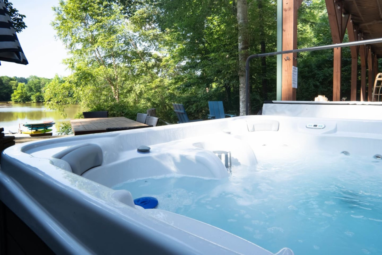 As the evening settles in, laughter fills the air around the fire pit where marshmallows turn golden brown and stories are shared under the starlit sky. The highlight of the night is a relaxing soak in the outdoor hot tub, big enough for the whole family, providing a soothing end to an adventurous day. Each moment at this cabin strengthens the bond of family, surrounded by nature’s beauty and a host of comforts that make every minute memorable. This isn't just a getaway; it's a picturesque retreat where family memories are waiting to be made, all set against the backdrop of Lake Norman's breathtaking views.