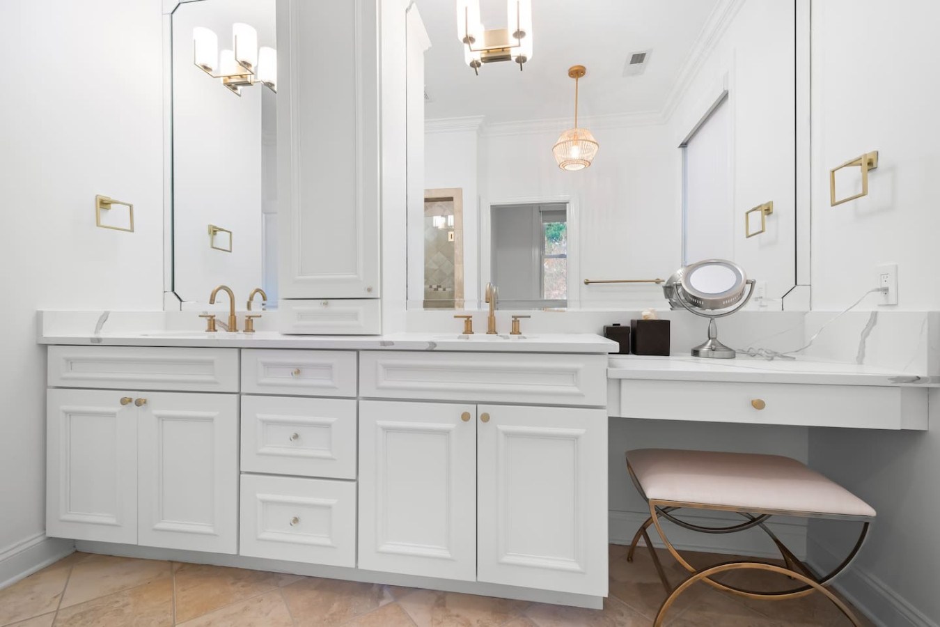 ✹ Bathroom 1: Ensuite to Main-Level Primary Suite w/ Huge Shower, Closet, and Double Vanities