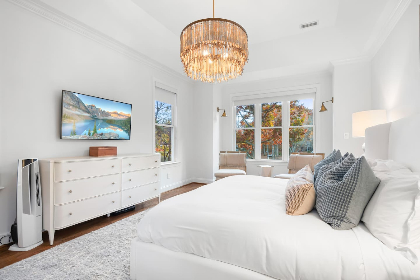 ✹ Bedroom 1: Main-Level Primary Bedroom with King-sized Bed, Ensuite Bathroom, His & Her Walk-in Closets