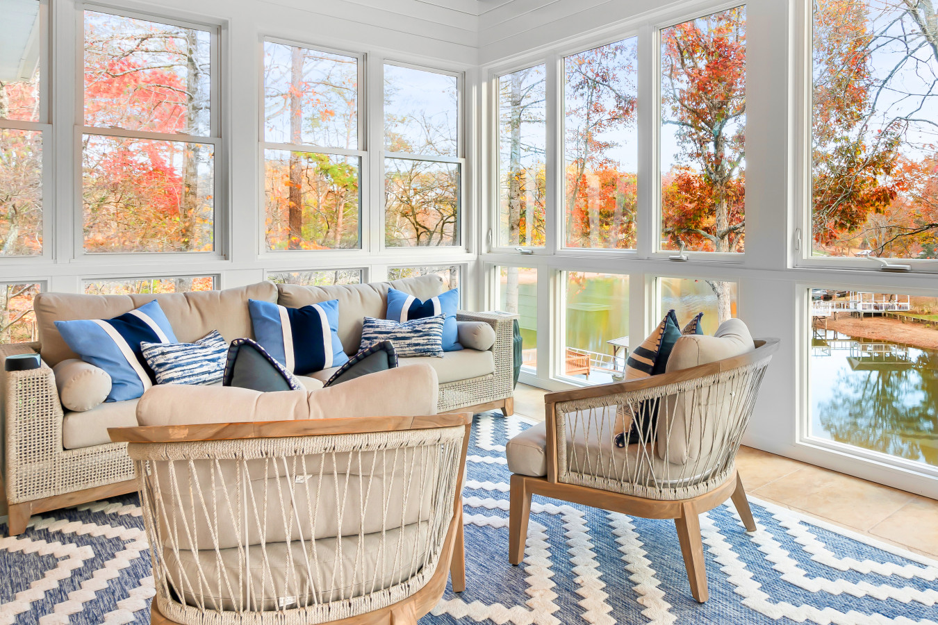 ✹ Stunning sunroom porch with full-length windows bringing in lots of light
