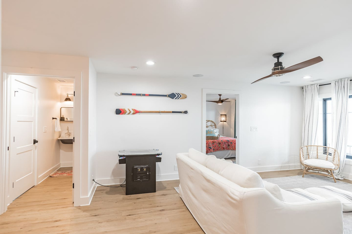 ✹ Living Room: Lower-Level Sofa Bed with Full-sized Mattress, Shared Bathroom